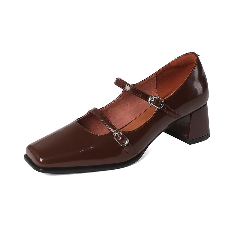 Chaussures carrées en cuir pour femmes