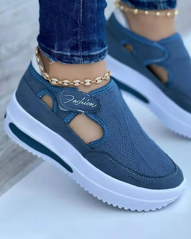 Elevate your style with our Cutout Letter Print Velcro Muffin Sneakers! These statement shoes feature a unique cutout design and bold letter print, perfect for adding a touch of edge to any outfit. The velcro closure ensures a secure and comfortable fit, making these sneakers both fashionable and practical. Step into confidence and make a statement with these must-have sneakers!